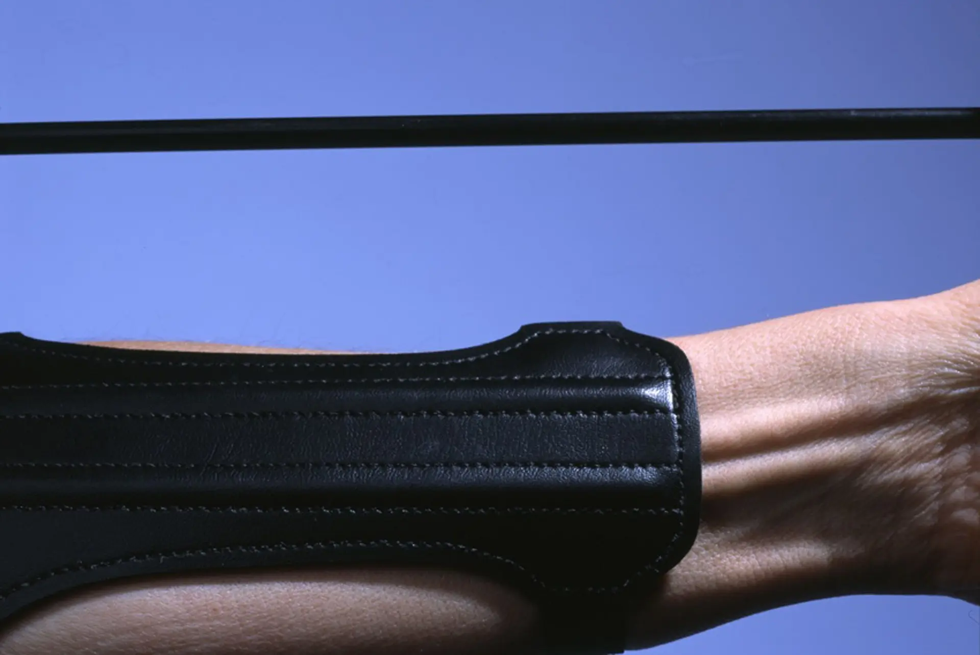 Zu sehen ist der videoausschnitt eines Unterarms mit gespanntem Bogen