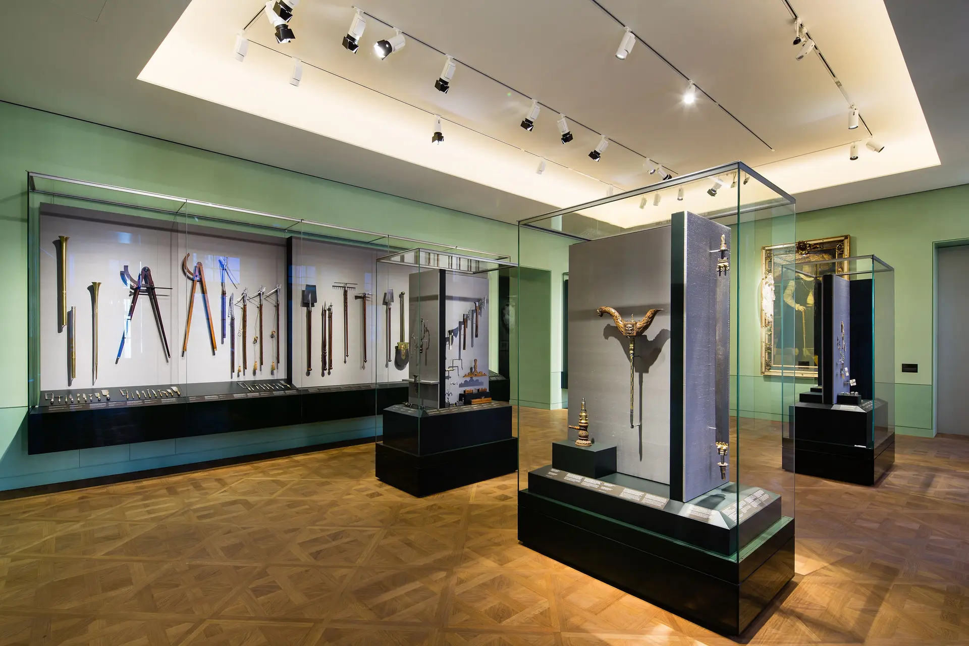 Holzparkett, wechselnde Grüntöne an den Wänden und Tageslicht, das durch die Fenster fällt, schaffen in den sieben Ausstellungsräumen im Georgenbau des Dresdner Residenzschlosses, in dem die sächsischen Kurfürsten und Könige einst wohnten, eine nahezu private Atmosphäre. Neben der vermutlich weltweit größten Sammlung von Handwerks- und Gartengeräten der Renaissance überraschen weitere vermeintliche Alltagsgegenstände: In einem für die Kurfürstin Anna zusammengestellten Tischkabinett befinden sich sechs venezianische Seifenkugeln, Nähzeug und eines der frühesten erhaltenen Fernrohre.